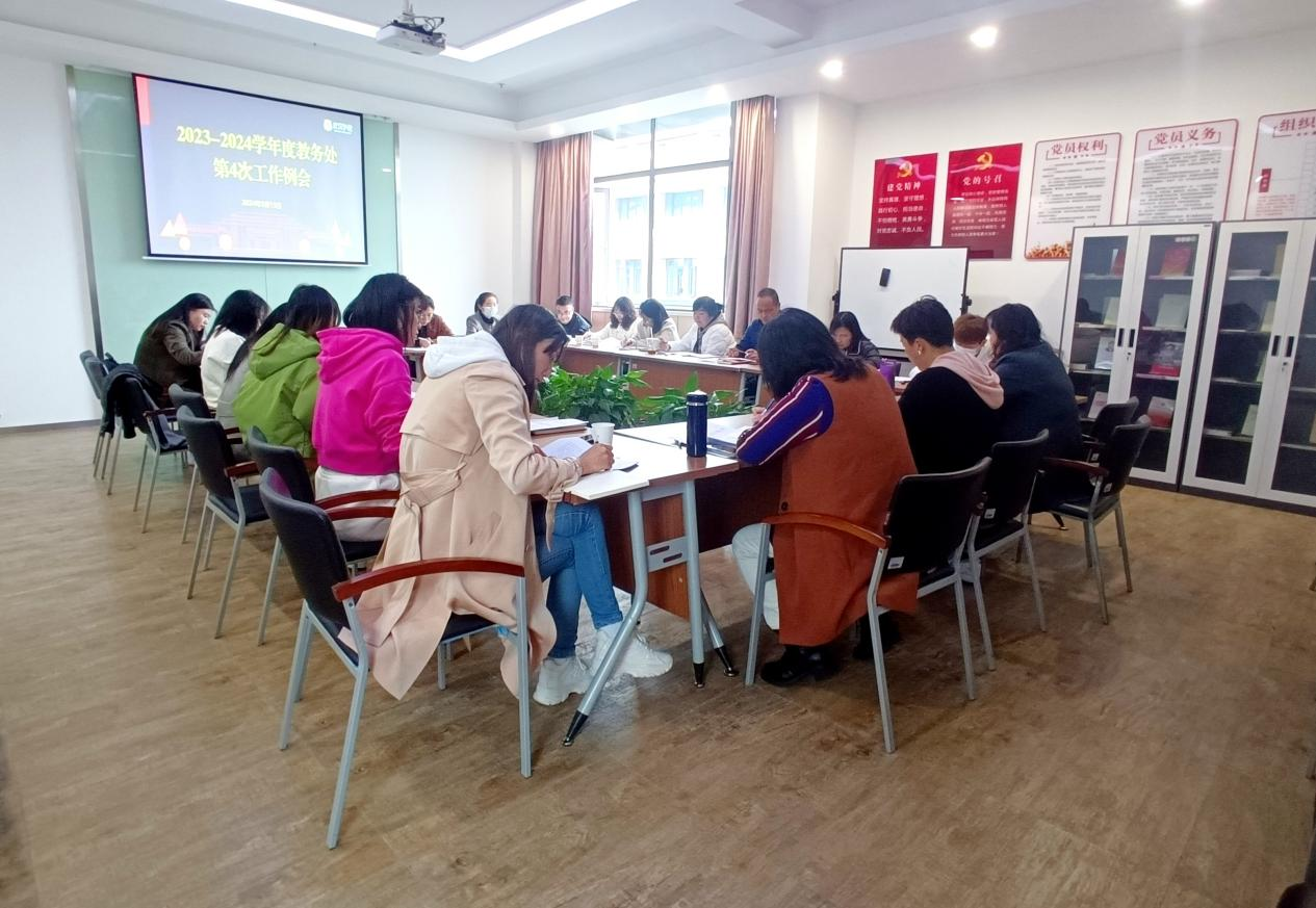 3月15日下午,教务处在行政楼202会议室召开本学期第4次部门工作例会暨教育思想大讨论动员部署会。教务处全体工作人员参加会议,会议由副处长谢忠琴主持。